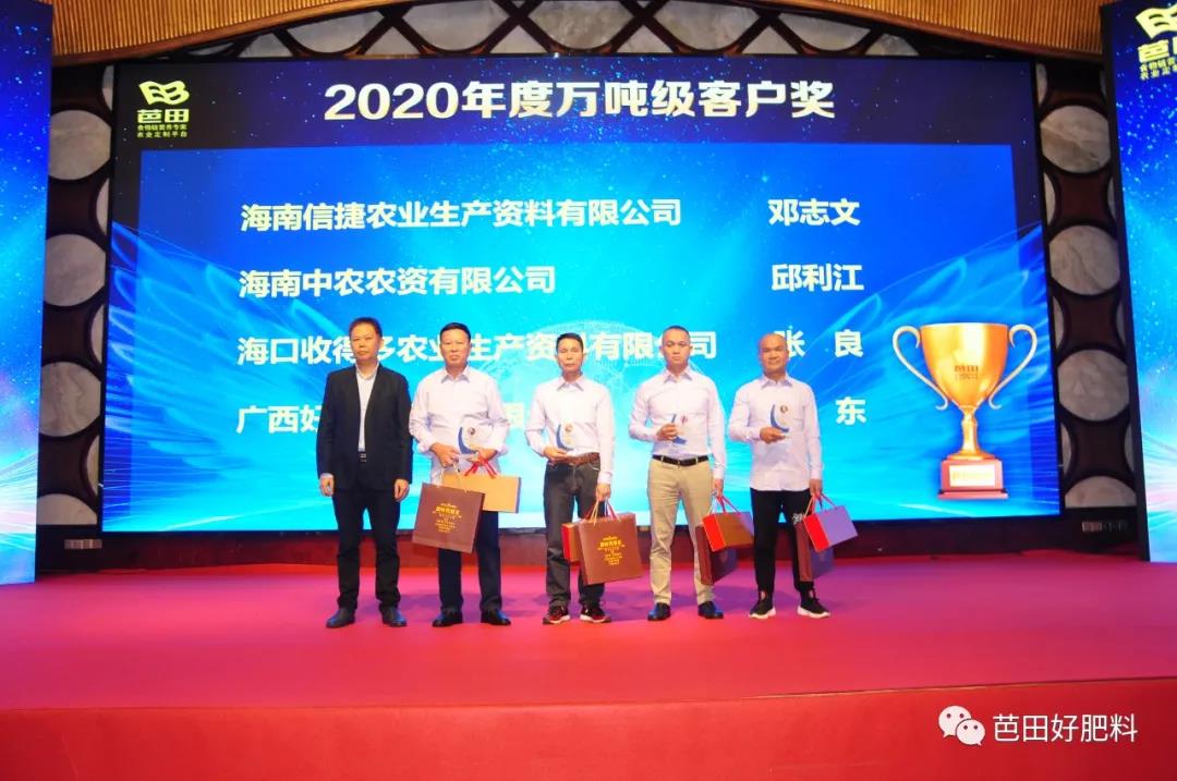万吨级客户获奖者广西好阳光农资有限公司陈东发表获奖感言时表示,疫情期间,很多厂家发不出货,芭田在抗击疫情的同时,积极安排生产,组织发货,保质保量,帮助大家抢占了春耕的先机,为今年的销量打下了良好的基础。今天的成绩多亏了芭田的鼎力支持!