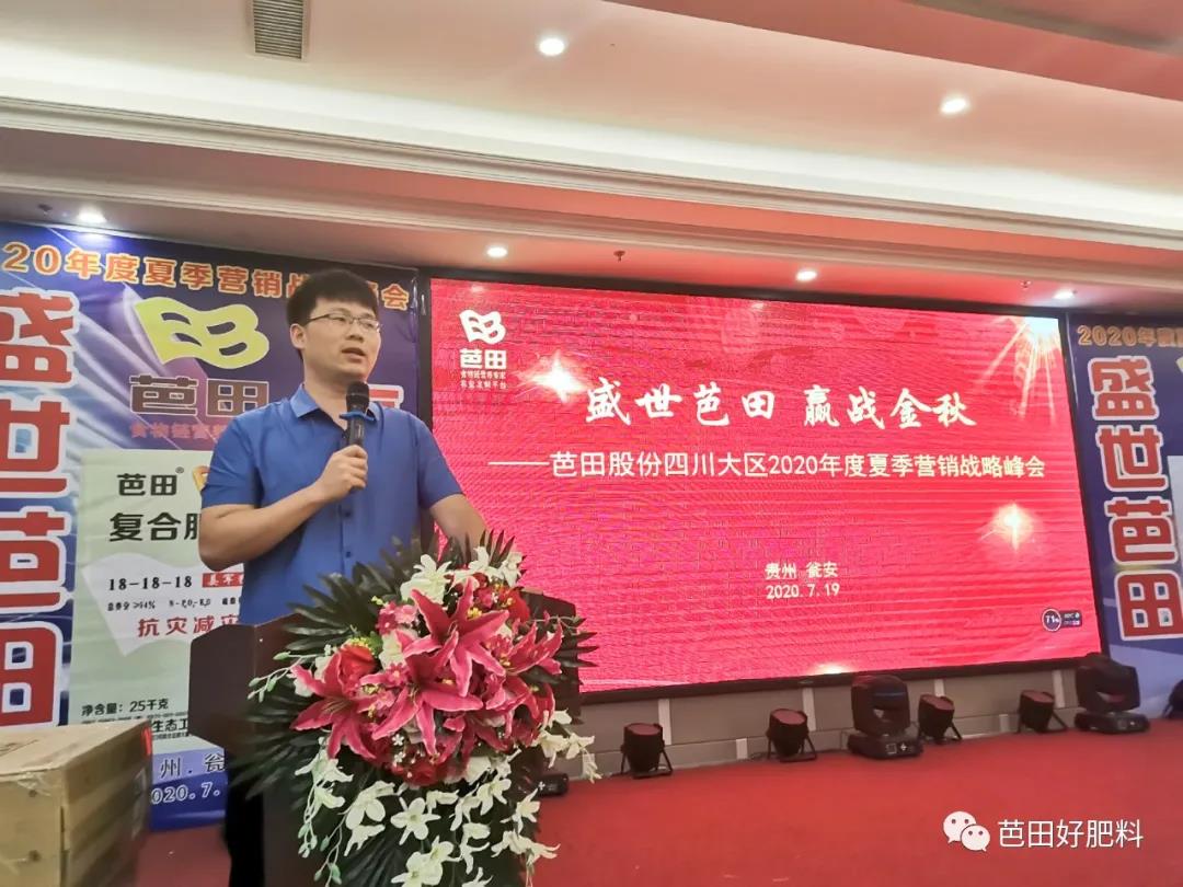 7月19日下午,以“盛世芭田 赢战金秋”为主题的芭田股份四川大区2020年度夏季营销战略峰会在贵州省瓮安县雍江大酒店拉开了帷幕,参加此次会议的领导有,芭田中原营销公司总经理杨青凯、市场中心总监李雷、研发平台经理/资深农艺师阚学飞、四川大区总监倪引及四川区域的营销人员。会议当天,约160余名来自四川各地的渠道商应邀参加,共享财富盛宴。由于当然上午刚参观完贵州芭田生产基地,渠道商们对芭田有了更进一步的了解,他们信心倍增,表示要用心经营芭田肥,实现芭田销量的逆势增长。会议当天,销售商们疯狂砸金蛋,积极交货款,抢购芭田新型肥料。会后数据显示,当天的芭田新产品订单量总额超过区域预期50%以上。