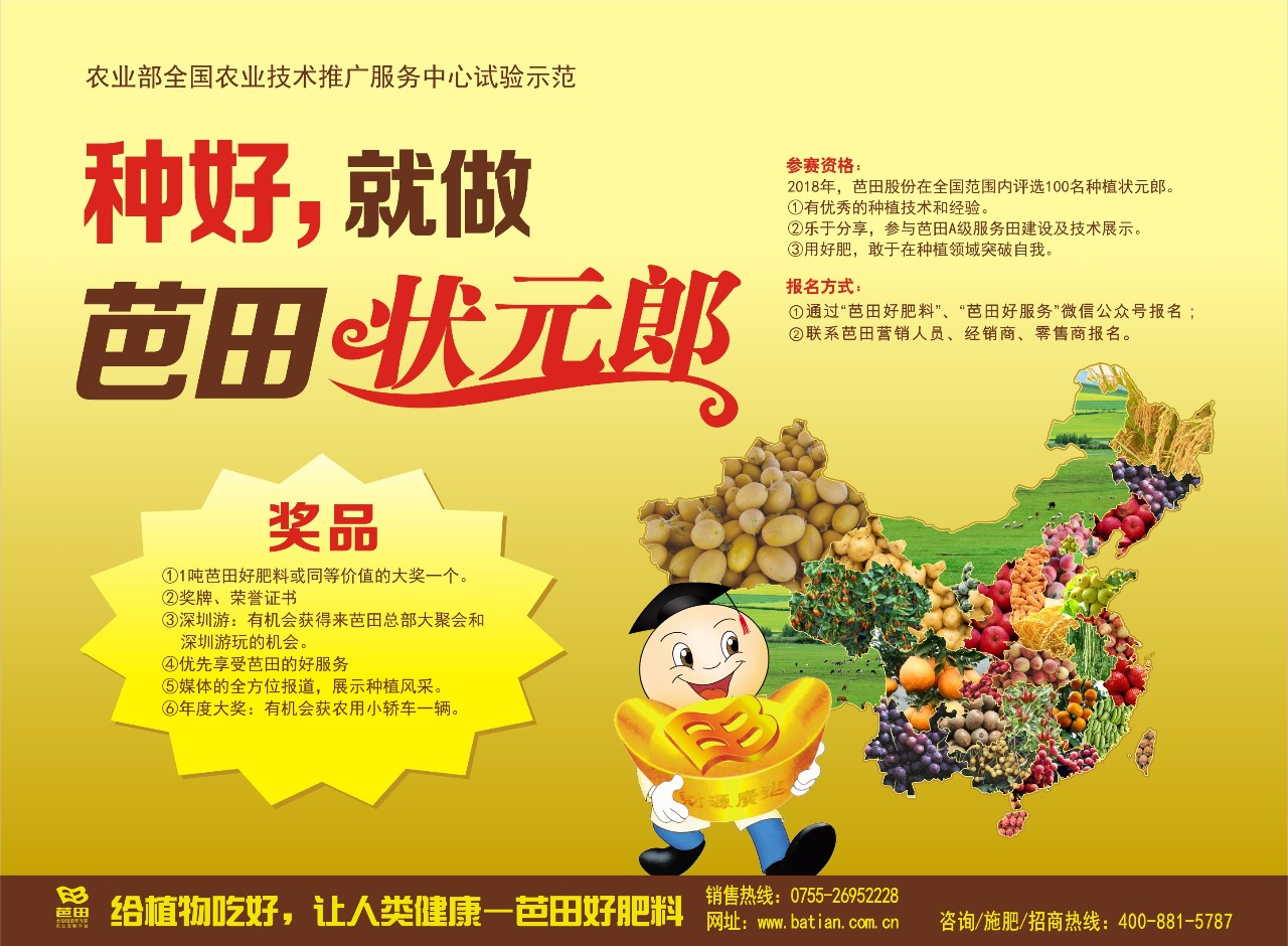 深圳市芭田生态工程股份有限公司(下简称:芭田股份)举办的种植状元郎评选活动正式启动之后,全国范围内掀起了作物大比拼的热潮。全国各地种植户踊跃报名积极参与活动,大家希望借助状元郎评选活动,能与各地的种植高手进行深度交流种植经验,种出高品质农产品。